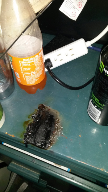 Everyone's okay, no injuries except to the phone and the furniture, and a fan is forcing air through the house to remove the smoke.